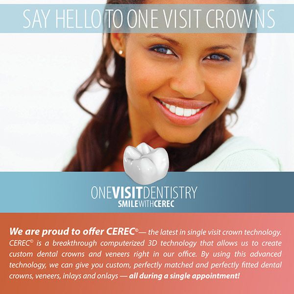 In our office, we can prepare, design, and precisely create the dental restoration to be bonded to your tooth that very day. The ceramic material used with Cerec 3™ is strong, durable, and matches the natural color and anatomy of your teeth.